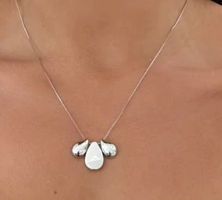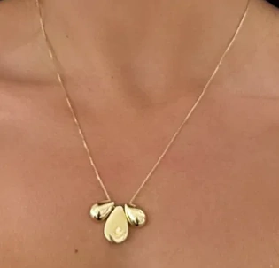 Este colar elegante apresenta uma corrente veneziana fina, combinada com gotas lisas que conferem um toque de modernidade e charme discreto.